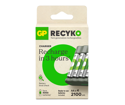 GP Recyko is also safe and easy to use. With a charge time of just 3 hours with auto cut off, you simply switch depleted batteries for full ones in the charger, and you're never out.